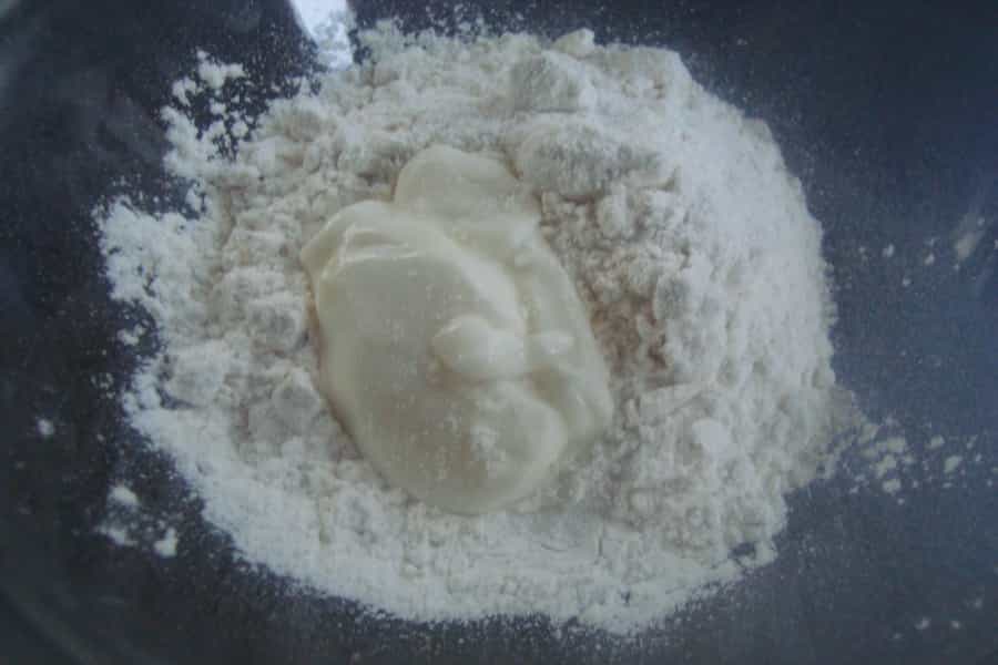 En un recipiente mezclar la harina y el yogurt, revolver con una cuchara.
