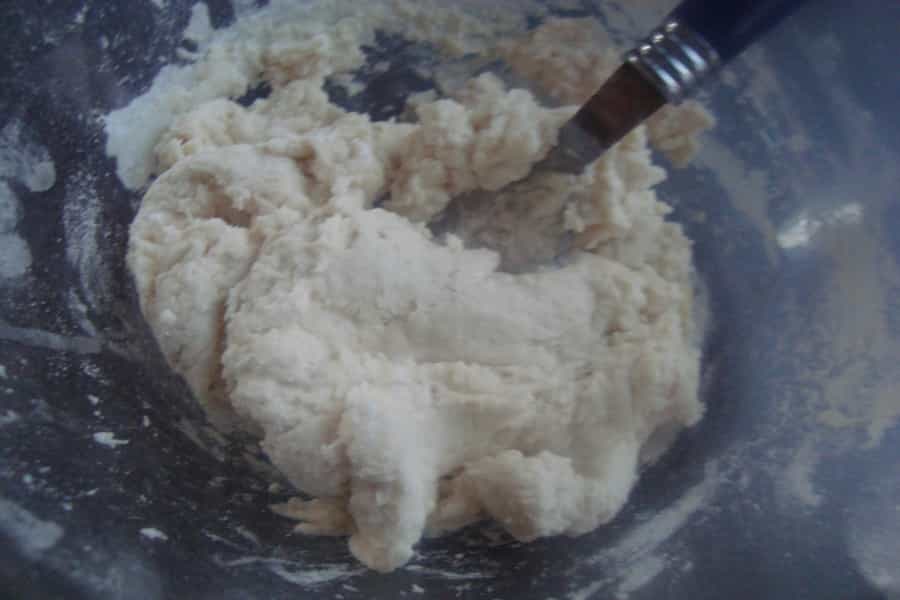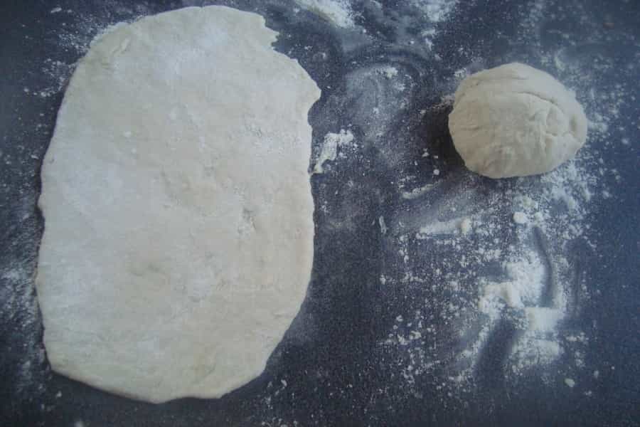 Dividir la masa en 3 porciones hacer bollos y aplastarlos.