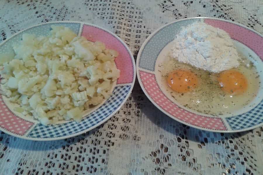 2. Una vez hervida, prepara la mezcla en un recipiente aparte. Debes agregar los huevos, los condimentos, la harina y el agua. Bate con un tenedor, así irás viendo si necesitas incorporar más harina o más agua a la mezcla. No debe quedar muy espesa. Luego, parte la coliflor en pequeños trozos e incorpóralos a la mezcla.