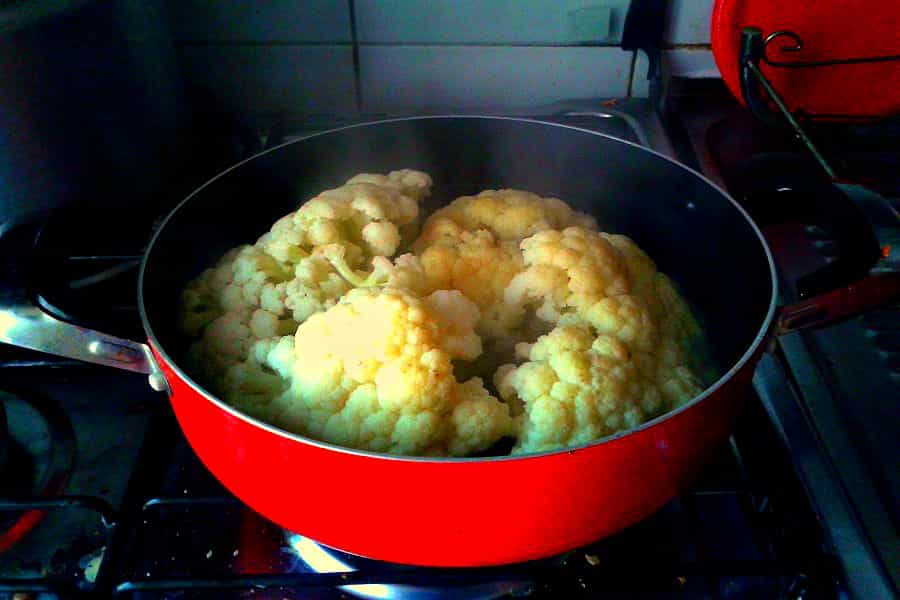 - Lo primero, es hervir la coliflor. En olla convencional, se demora cerca de 7 minutos. Así es que es bastante rápido.