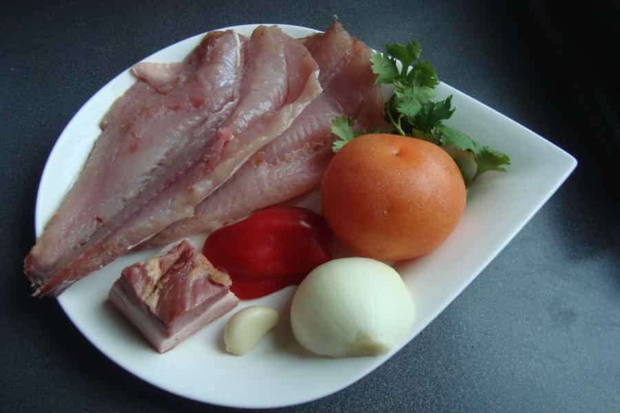 - 4 merluzas medianas o 2 merluzas grandes (puede ser otro pescado)