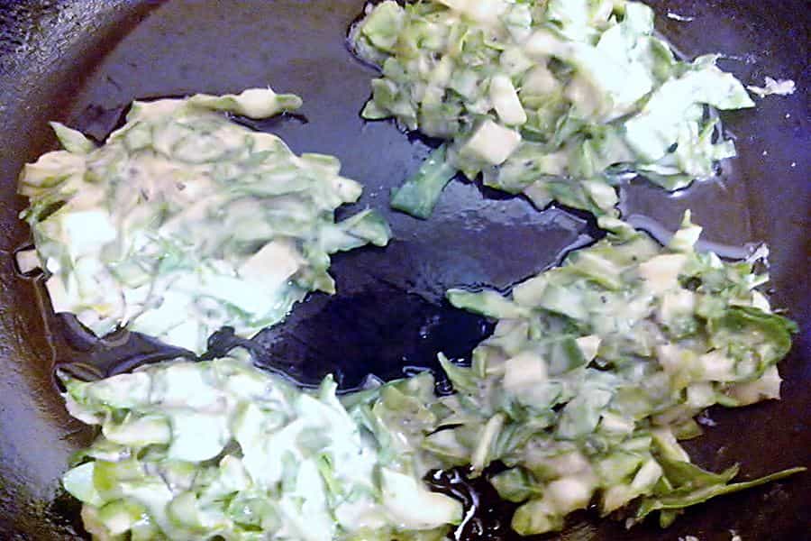 Después formar los fritos, sacando cucharadas de la mezcla. Vertirlos en una sartén con aceite caliente, y cocinar 3 minutos por lado, o hasta que estén dorados.