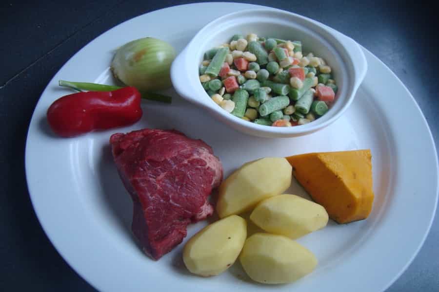 - 250 gramos de verduras surtidas (choclo, arvejitas, porotos verdes, zanahoria)
