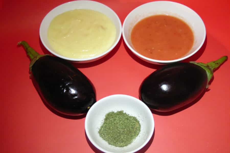 En un molde deposita las berenjenas y rellena con la salsa de tomate.