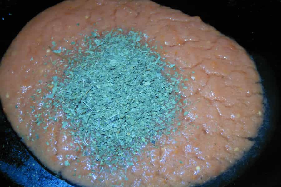 Luego fríe en un sartén la salsa de tomates. (Lo ideal es que la salsa esté recién preparada. Lo puedes hacer procesando 3 tomates frescos) con el orégano y reserva.
