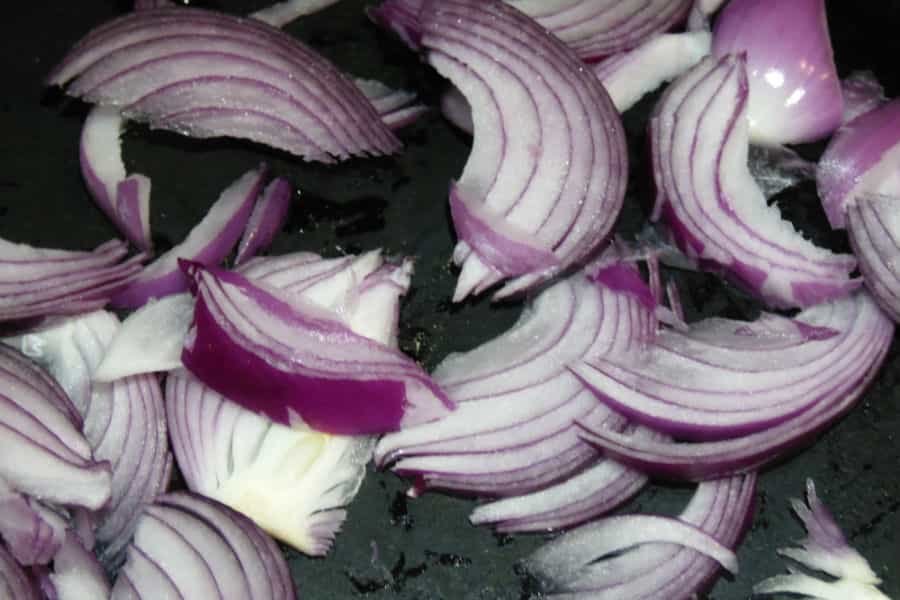Luego vamos a pelar y picar las cebollas en pluma y las vamos a freír. Podemos agregar orégano.