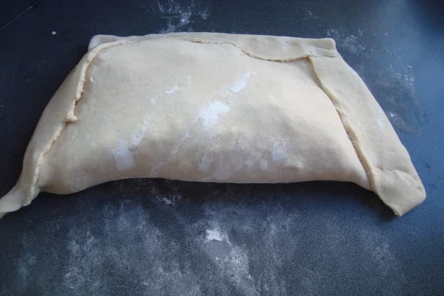 Humedecer los bordes y cerrar la empanada.