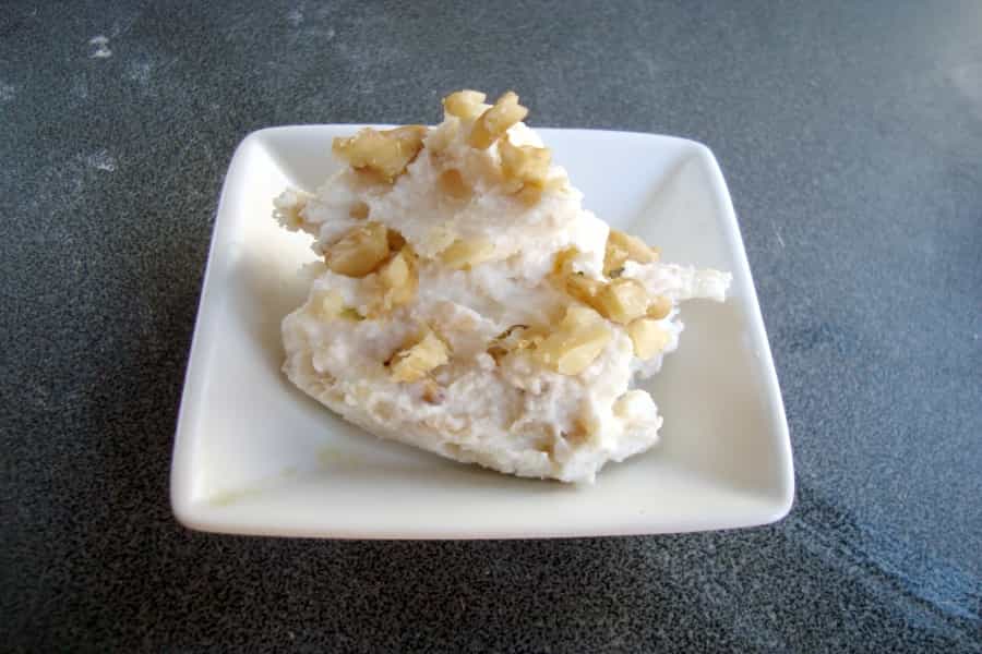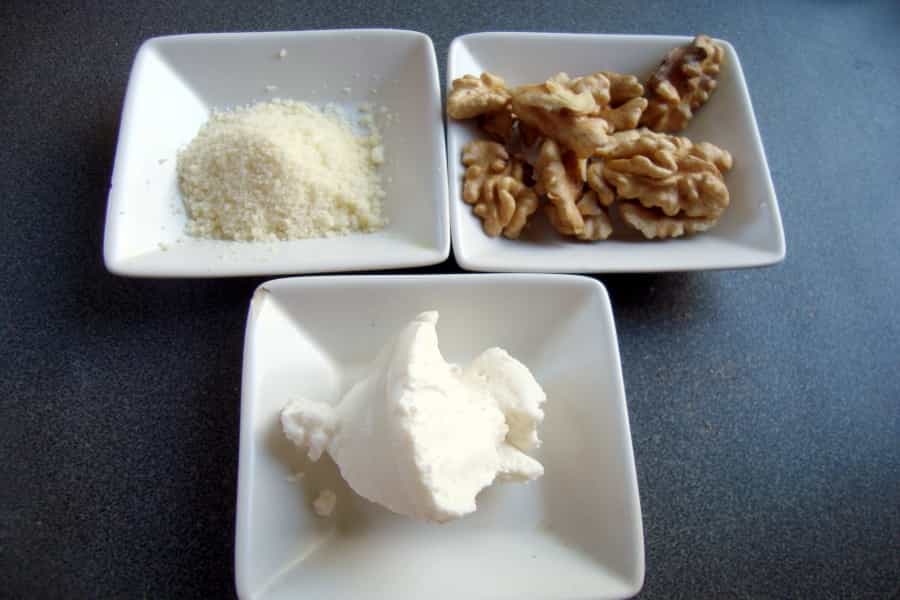 En un recipiente mezclar ricotta y queso rallado, batir hasta cremar. Agregar orégano, nueces y sazonar a gusto. Y lista para servir.