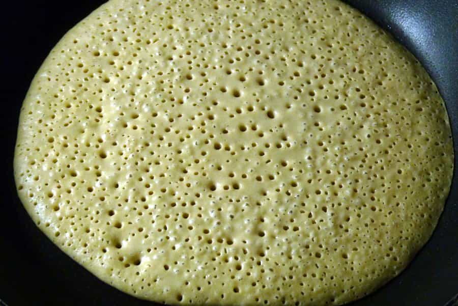 Para saber cuándo darlo vuelta, puedes guiarte por la imagen en que aparece el panqueque con “burbujitas”. Si prefieres los panqueques estilo tortilla, déjalos cocer por más tiempo.