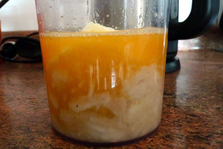 Exprime el jugo de las naranjas. Si quieres puedes agregar la naranja en trozos, obtendrás más fibra de esta forma.