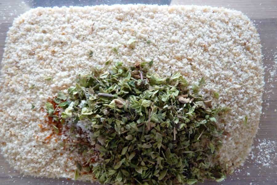 Disuelve el chuño en ¼ taza de agua a temperatura ambiente. Mezcla el orégano, merken y sal con el pan rallado.