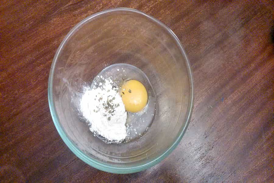 1.- Ponga el huevo, la sal, la harina y el orégano en un bowl y bata hasta lograr que quede sin grumos.