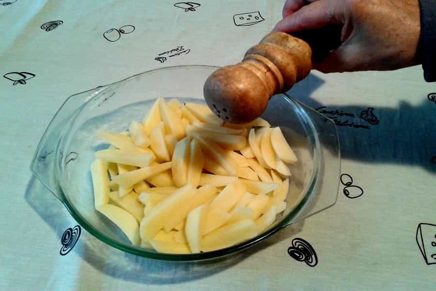 2. Luego, debemos secar las papas. Para esto, puedes ponerlas sobre un paño de cocina. Una vez que compruebes que están súper secas, le debes espolvorear sal baja en sodio (si no tienes este tipo de sal, puedes aplicarle la normal). Este es un buen punto, porque muchas personas le aplican la sal una vez fritas. La idea acá, es echarle antes de freírlas.