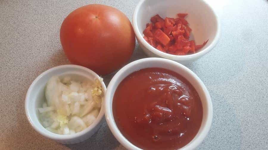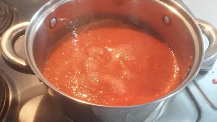 En paralelo, por todos los ingredientes de la salsa en la juguera con ½ taza de agua. Licúalos bien y pon todo en una olla a hervir, sólo por 3 minutos.