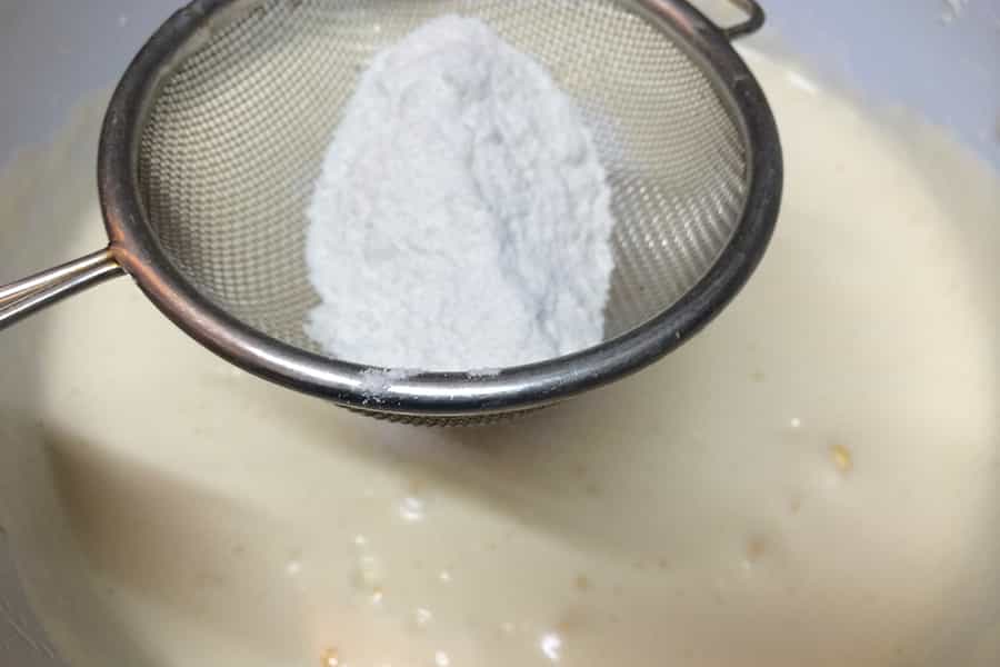 Luego, añadiremos la harina en tres tandas, pero es importante que la tamicemos primero. Con movimientos envolventes mezclaremos todo, procurando que no queden grumos.
