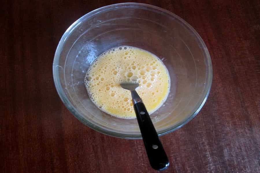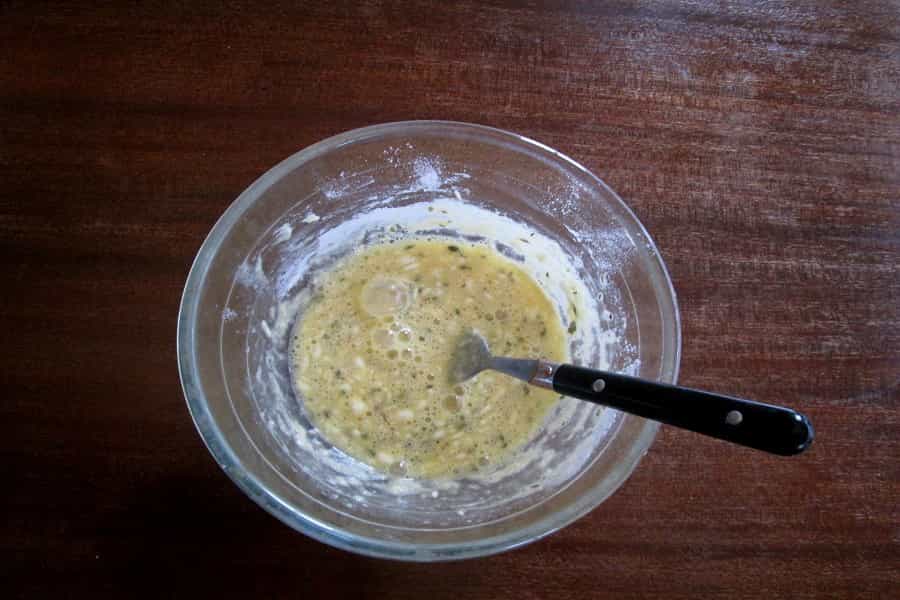 7.- Calienta un sartén con aceite y vierte la mezcla hasta que esté cocida.