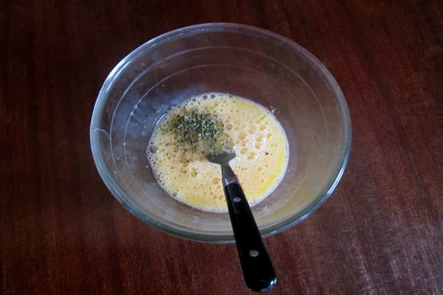 6.- Pon los huevos en la mezcla y trózalos un poco.