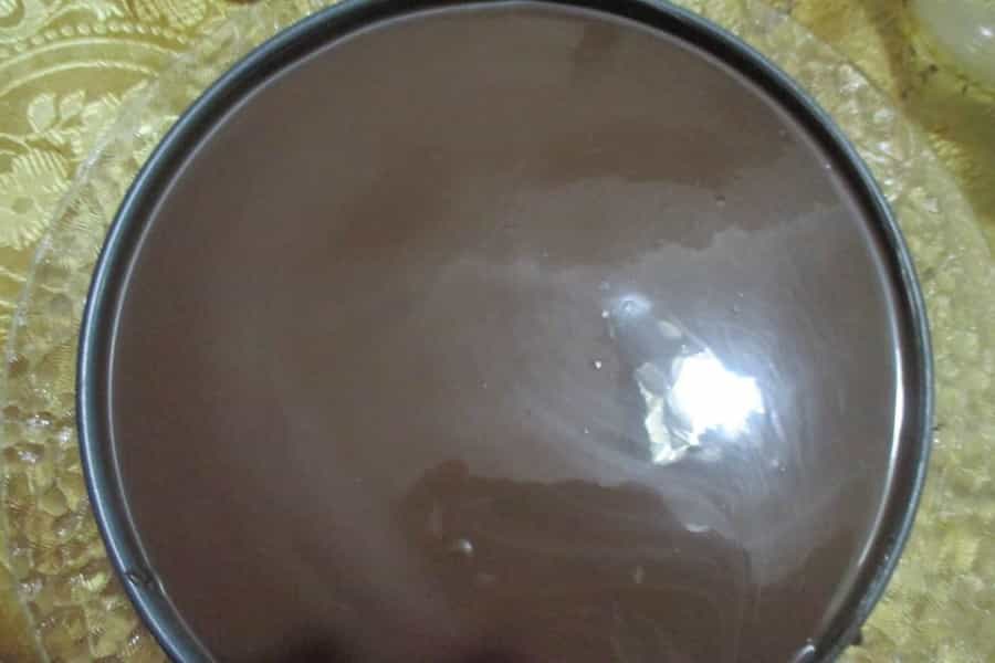 La cobertura es esencial para que el Manjarate quede perfecto. Para prepararla, entibia otra porción de crema (200 gramos) en una cacerola. Una vez que alcance una temperatura ni muy fría ni muy caliente, agrega el chocolate picado.