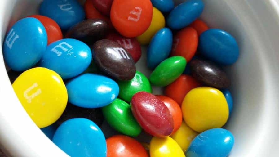 Coloca las bolitas en un plato y ponles el chocolate M&M arriba para darles el color navideño.