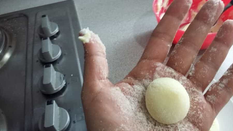 Forma bolas del tamaño de una moneda o más grande. Si sientes que está muy gomosa la mezcla, puedes agregar un poco más de leche en polvo. Con cuidado eso sí, porque una vez que se sequen las bolitas pueden quedar muy duras e incomibles.