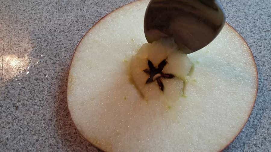Corta la manzana en rodajas de 3 mm aproximadamente y con la ayuda de una cuchara quítale el centro.