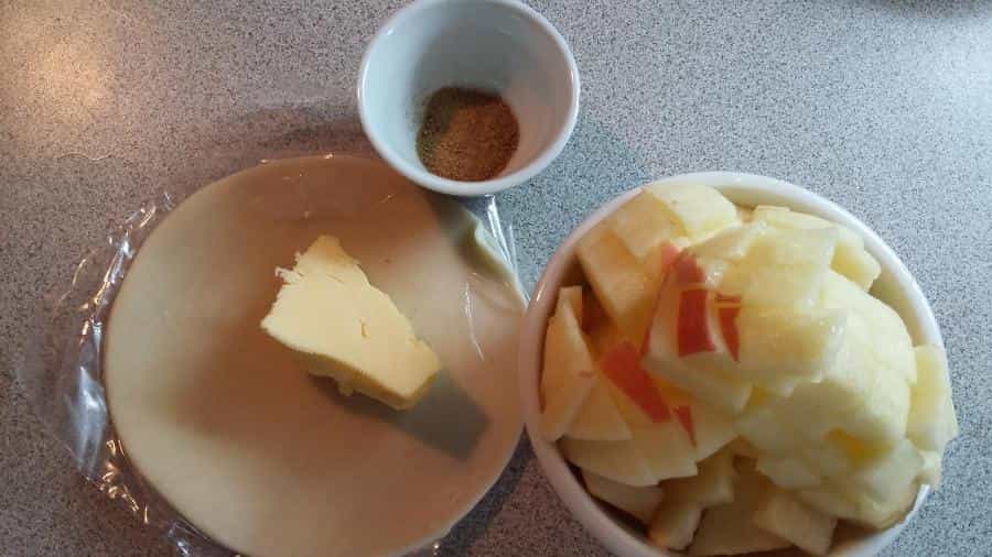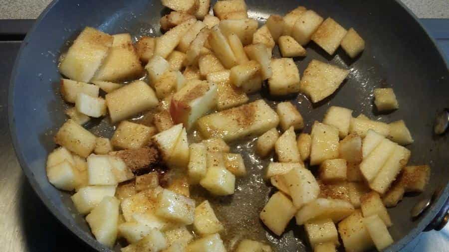 Coloca en un sartén la mantequilla hasta que se derrita. Agrega los cubos de manzana, manteniendo en movimiento para que no se quemen. A los 2 minutos aproximadamente, coloca la canela en polvo. Si gustas puedes agregarle azúcar, pero la manzana suelta todo su dulce al cocinarse. A los 8 minutos ya la manzana debería estar dorada y suave. Bájala del fuego.