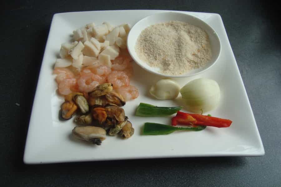 - 1 kilo de surtido de mariscos congelados o 2 kilos de mariscos frescos surtidos