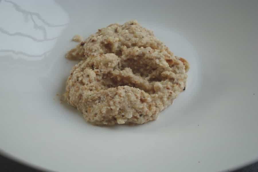 Triturar toda esta mezcla hasta obtener una especie de pasta homogénea, puede ser en un mortero, en una procesadora o en la juguera con un poco de líquido.