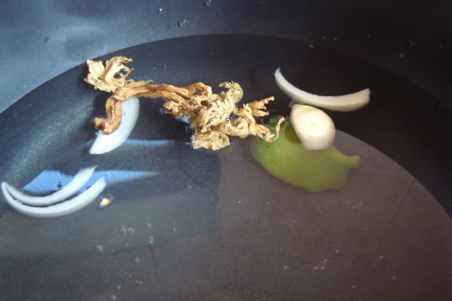 Puedes utilizar un caldo de huesos o hacer un caldo de verduras. Para esto, en una olla con 1 ½ litro de agua añadir cebolla, pimentón, ajo y verduras. Cocinar a fuego medio hasta que hierva. Apagar y reservar.