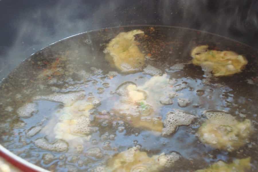 Cuando el caldo este hirviendo, cocinar a fuego medio e incorporar el batido de a cucharadas. Seguir cocinando por 10 a 15 minutos (en tiempo depende del tamaño de los sopones o ahogados). Rectificar la sazón, apagar y servir.