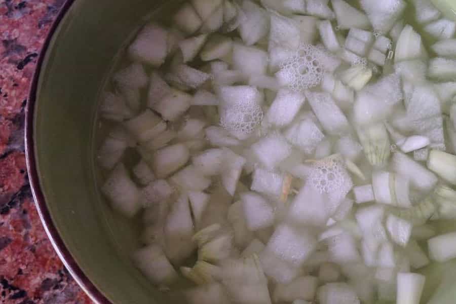 Primero debes picar la cebolla y amortiguarla en un bowl con agua. Así bajarás un poco el sabor fuerte.