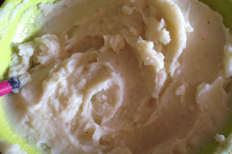 Puedes hacer puré casero, pero para ahorrar tiempo yo usé puré en caja. Debes prepararlo siguiendo las instrucciones, ya que cada marca varía algunos pasos.