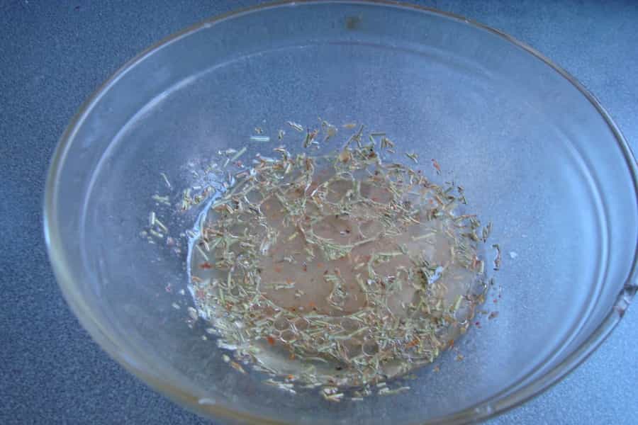En un recipiente mezclar aceite, jugo de 1 limón, comino, orégano, papikra, semillas de cilantro y sal a gusto.