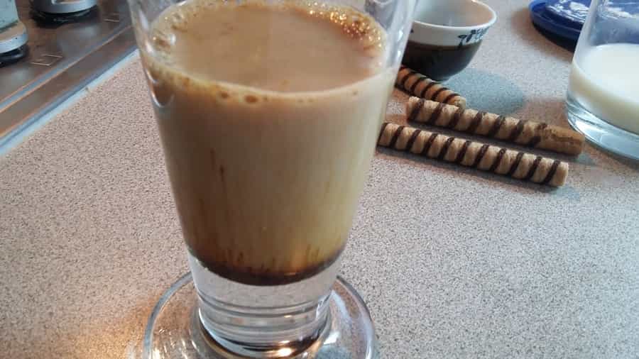 Lo ideal es hacer este café en un vaso largo, para disfrutar de todos los ingredientes. Coloca las 2 cucharaditas de café instantáneo y agrega leche para disolver. La cantidad de café dependerá de cuán fuerte te guste.