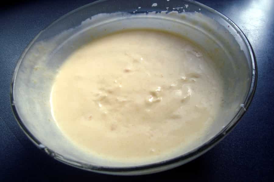 Apagar, verter a un pocillo y revolver hasta que la preparación se entibie. Agregar el colapez (sin el líquido) y revolver enérgicamente hasta integrar bien.