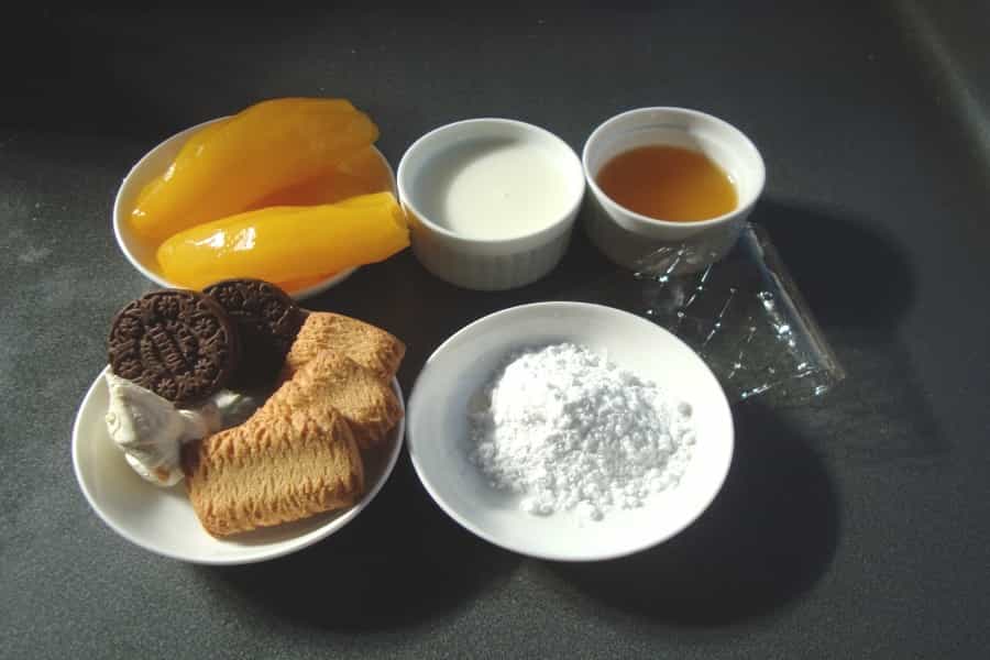 Si utilizas galletas: triturarlas y mezclarlas con 3 cucharadas de mantequilla derretida. Distribuir la masa obtenida en el fondo de un molde, presionando suavemente para compactar. Refrigerar por 30 minutos. Si utilizas un bizcocho de torta, colocarlo en la base del molde y humedecerlo con el jugo de las papayas.