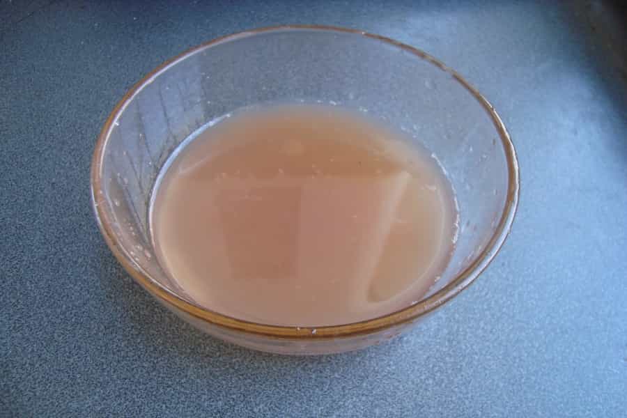 Disolver la harina de trigo o maicena en un poco del líquido de la cocción de las pepas y hollejos (que debe estar frío)