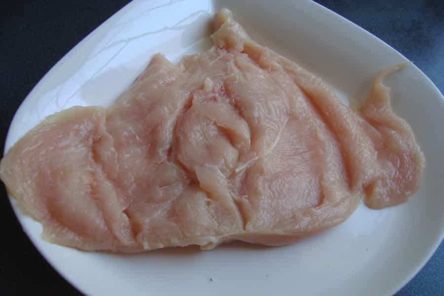 Con ayuda de un cuchillo, abrir las pechugas de pollo para adelgazarlas.
