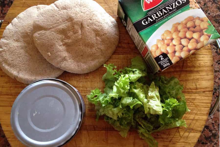 Primero debe ir la lechuga al fondo, después el atún y al final los garbanzos. Puedes agregar un poco más de lechuga para que quede en el plato.