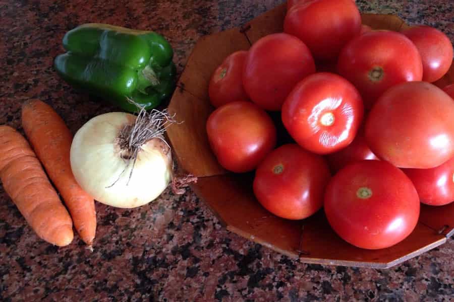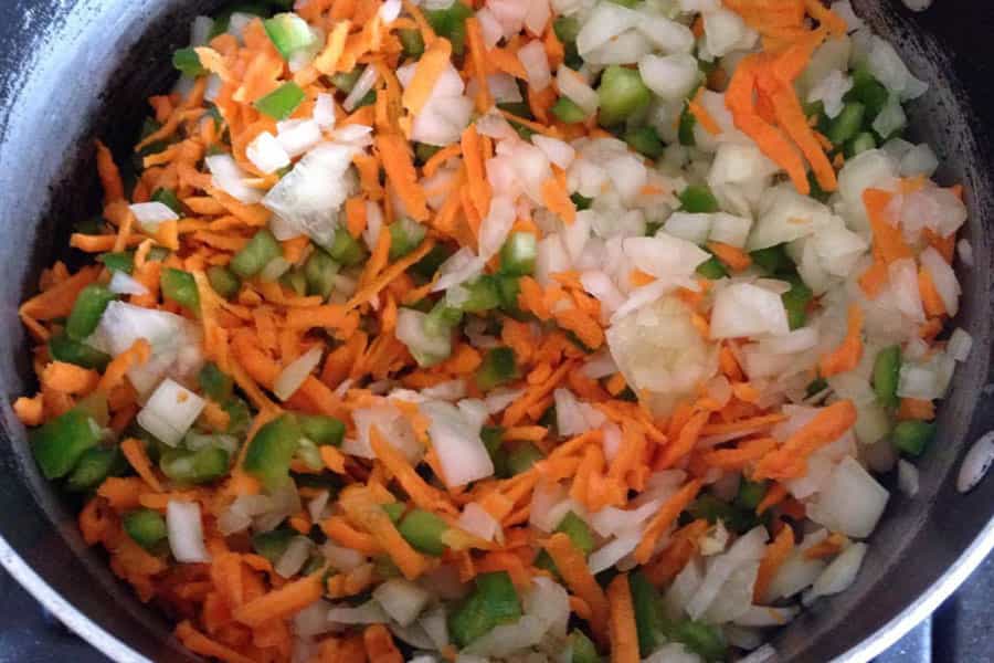 Mientras los tomates están en la olla, pica muy pequeños la cebolla, zanahorias y el pimentón. Luego, ponlo a sofreír durante unos 5 minutos. Cuando estén listos, apaga el fuego y déjalos a un lado, para ser usados más adelante.