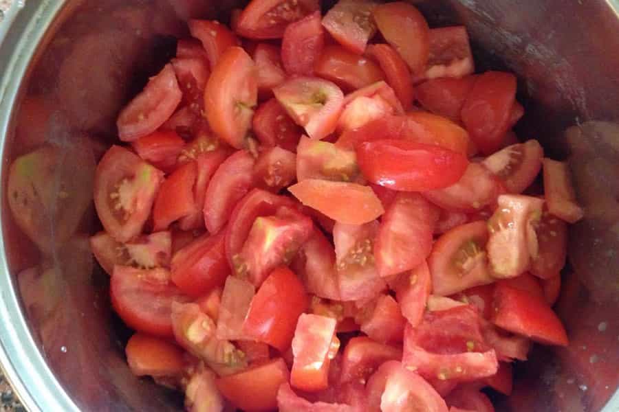 Primero debes lavar muy bien los tomates y picarlos en rodajas. Yo los hago con cáscara, así rinden mucho más. Si prefieres, puedes pelarlos. Agrega pimienta, sal y orégano; lo que tú quieras, todo dependerá de tu gusto. Luego, pon a fuego medio los tomates en una olla tapada.
