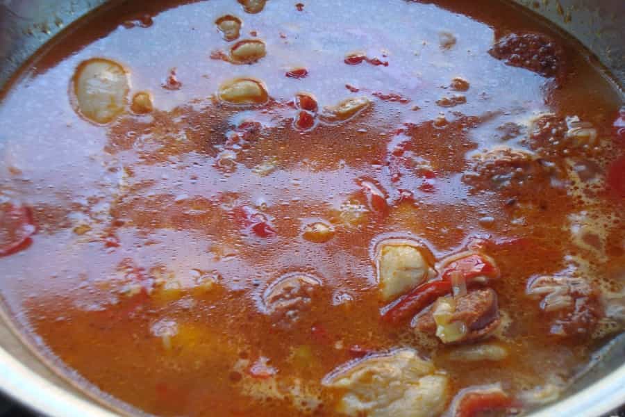 - 3 tazas de caldo o agua