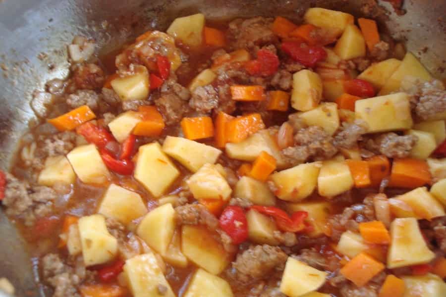 Cocinar a fuego medio por 15 minutos o hasta que las papas y zanahorias estén cocidas. Si fuese necesario, puedes ir agregando agua en pequeñas cantidades. Transcurrido el tiempo de cocción, apagar y servir. Puedes disponerlo sobre un taco, una tostada o acompañado de arroz.