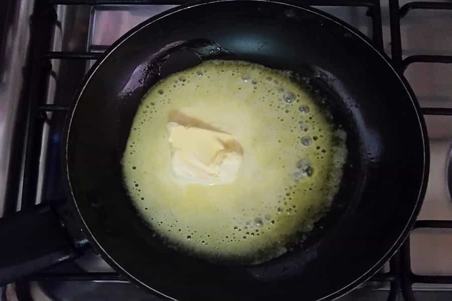 Una vez lista la mezcla, toma un sartén y derrite la mantequilla.