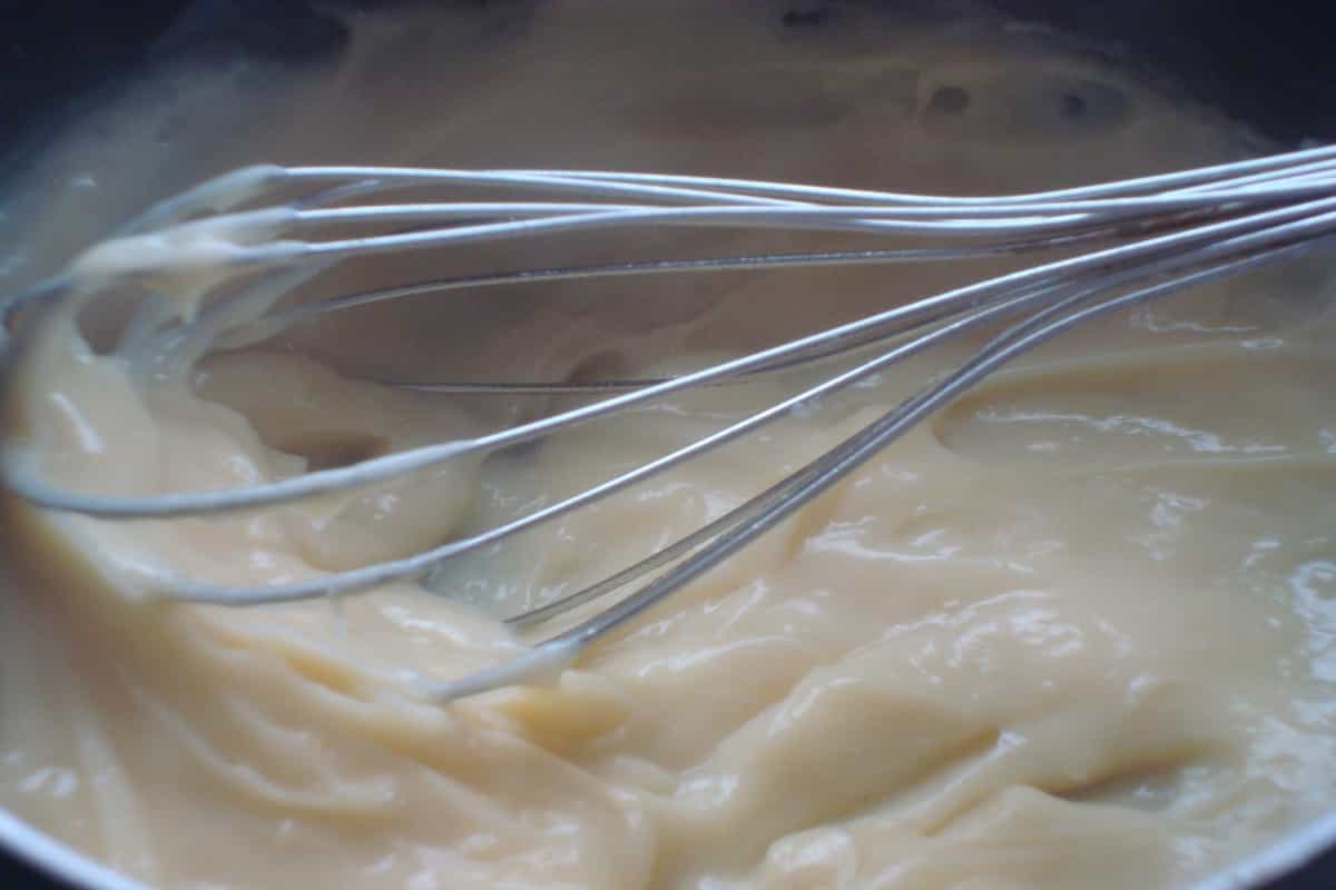En una olla, colocar los huevos, las claras y 4 cucharadas de azúcar. Batir e ir agregando poco a poco el vino dulce. Cocinar a Baño María, sin dejar de batir hasta conseguir una especie de crema. Una vez obtenida una consistencia cremosa, retirar del fuego y dejar enfriar.