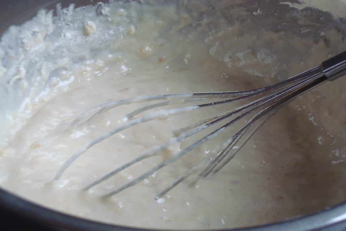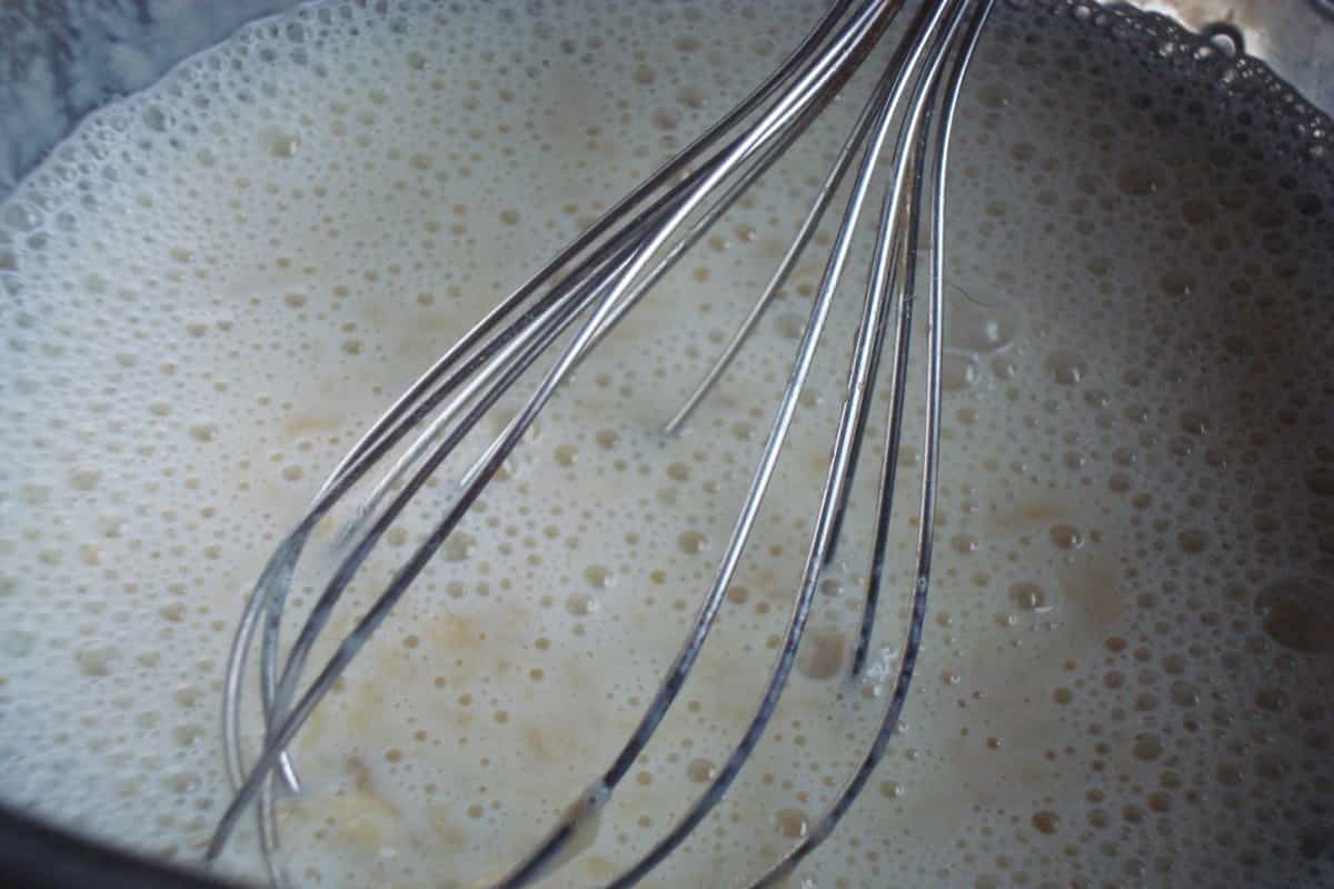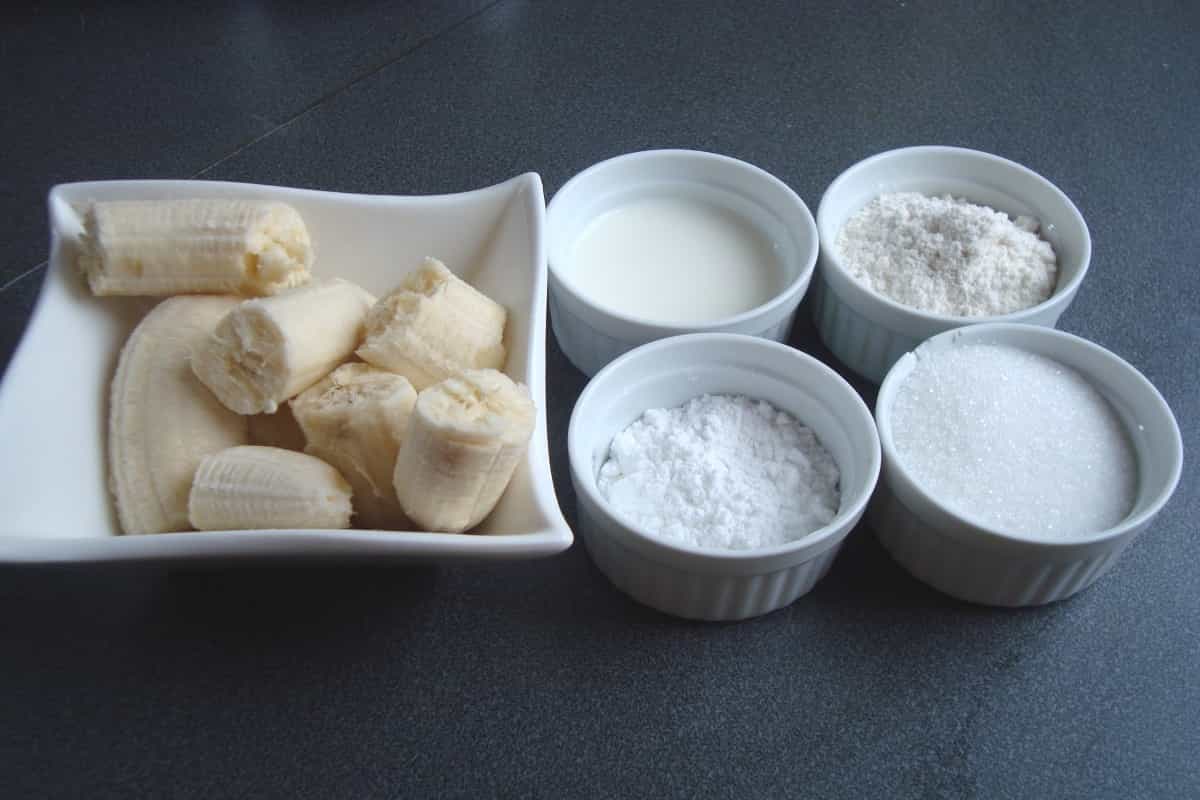 En un recipiente, batir los plátanos molidos y la leche.