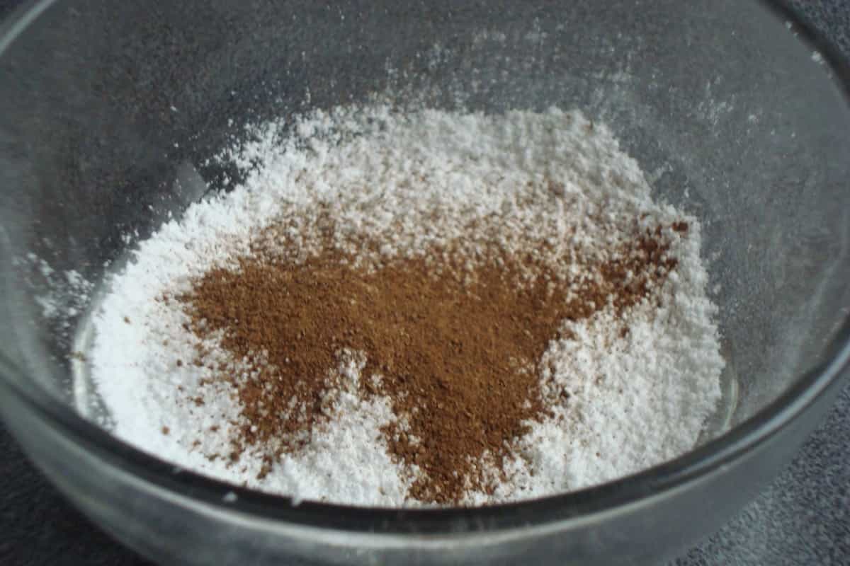 En un pocillo, mezclar azúcar flor y canela. Espolvorear los buñuelos.