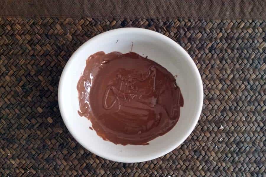 Una vez listo ese paso, derretiremos el chocolate. Puede ser a baño maría o en el microondas. Recuerda que si usas ésta última opción, debes ser cuidadosa y poner la potencia en “descongelar”, revisando y revolviendo tu chocolate cada 10 segundos.