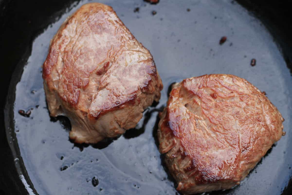 Comenzamos a preparar la carne. Es importante sellar primero este corte, para que la carne conserve su jugo. Esto se hace con fuego bien alto, colocando aceite de oliva en el sartén y cocinando hasta que se forme una pequeña costra alrededor de la carne. Luego de sellarla, bajaremos el fuego y seguiremos cocinando hasta el punto deseado. Retirar el lomo sin pincharlo.
