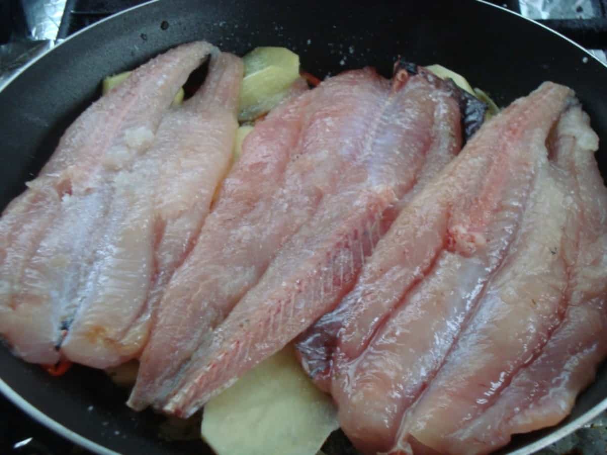 Sobre éstas, disponer los filetes de merluza salpimentados a gusto.